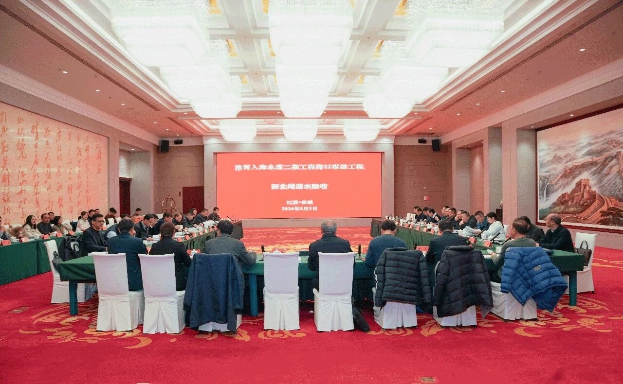 2026年2月2日至3日,淮河入海水道二期工程海口枢纽新北闸顺利通过通水验收,此次验收工作由省水利厅主持组织实施。验收期间,成立了技术预验收专家组,通过实地查看工程现场、查阅工程建设档案资料、听取各参建单位工作汇报、专家质询与讨论等形式,对新北闸水下工程建设内容进行了全面、细致的核查,验收过程严格遵循国家及水利行业相关规程规范。验收委员会一致认为,淮河入海水道二期海口枢纽新北闸已按批准的设计内容完成相关建设,工程施工质量符合设计及规范要求,工程档案资料基本齐全,具备通水条件,同意通过通水验收。