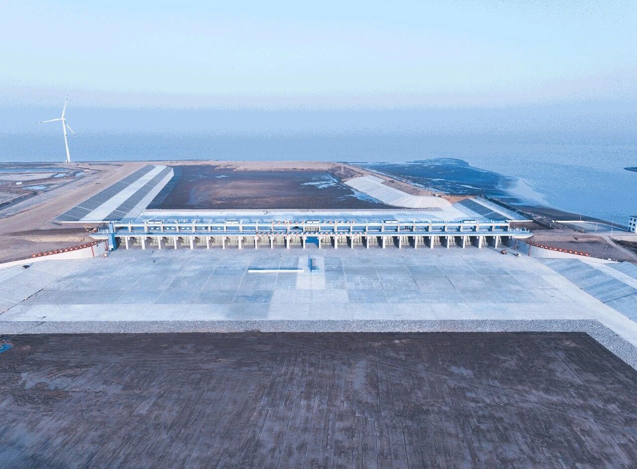 淮河入海水道二期工程是进一步治理淮河的关键性骨干工程,对完善流域防洪体系具有战略意义。海口枢纽作为其末级控制工程,坐落于淮河入海口,总投资12.35亿元,设计行洪流量高达每秒7000立方米,是集泄洪、排涝、挡潮、减淤功能于一体的Ⅰ等大(1)型工程。海口枢纽新北闸顺利通过通水验收,标志着这一提升洪泽湖防洪标准至300年一遇的关键控制性工程取得重大阶段性胜利,为保障淮河下游地区安澜奠定了坚实基础。